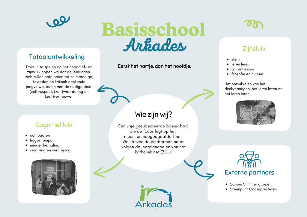 VBS Arkades is in 2015 opgericht om tegemoet te komen aan de specifieke onderwijs- en begeleidingsnoden van sterk cognitief functionerende kinderen.